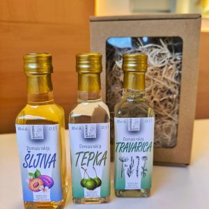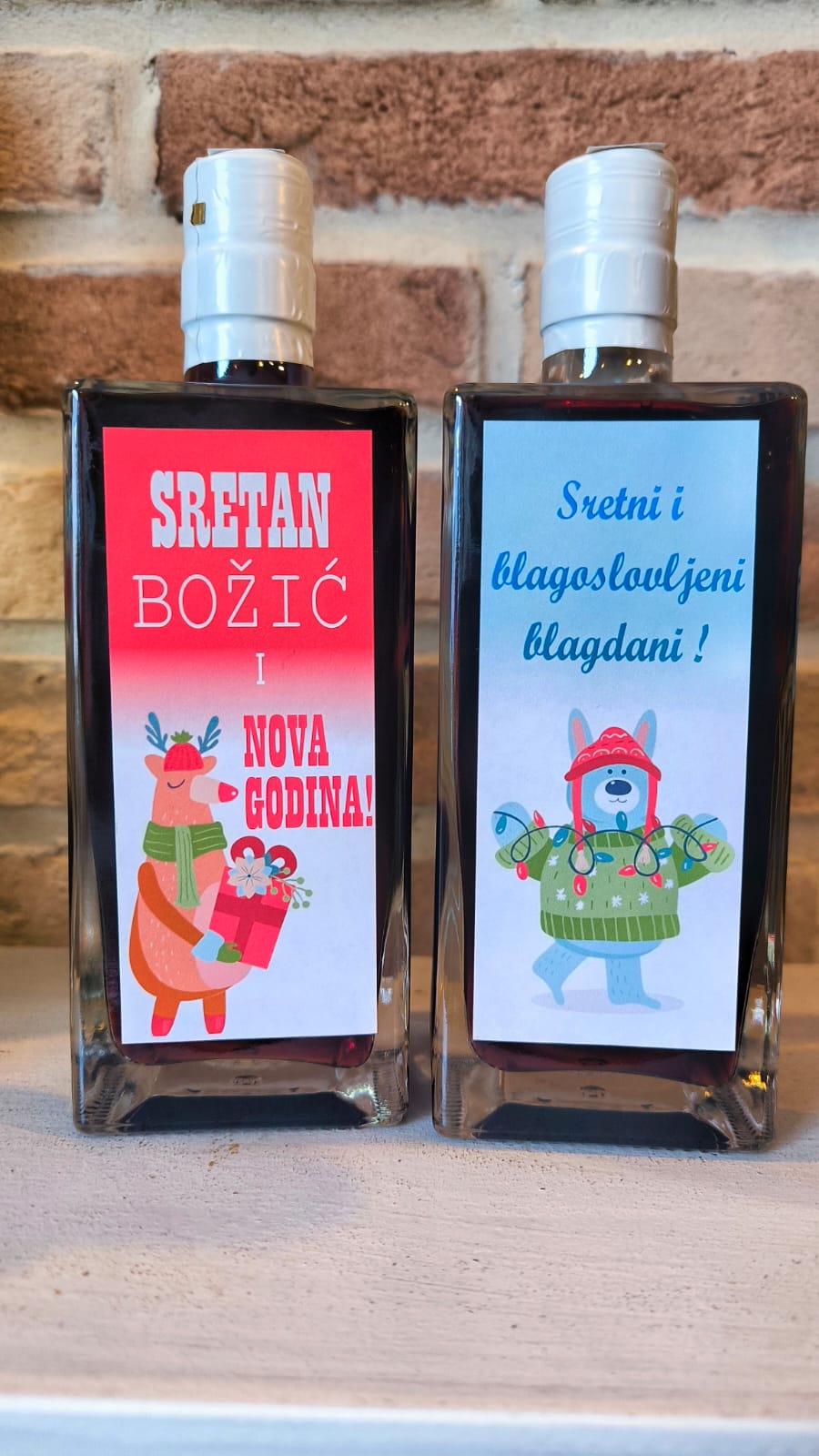 Domaći liker prigodno upakiran sa etiketom “Sretan Božič i Nova godina” ili “Sretni i blagoslovljeni blagdani”